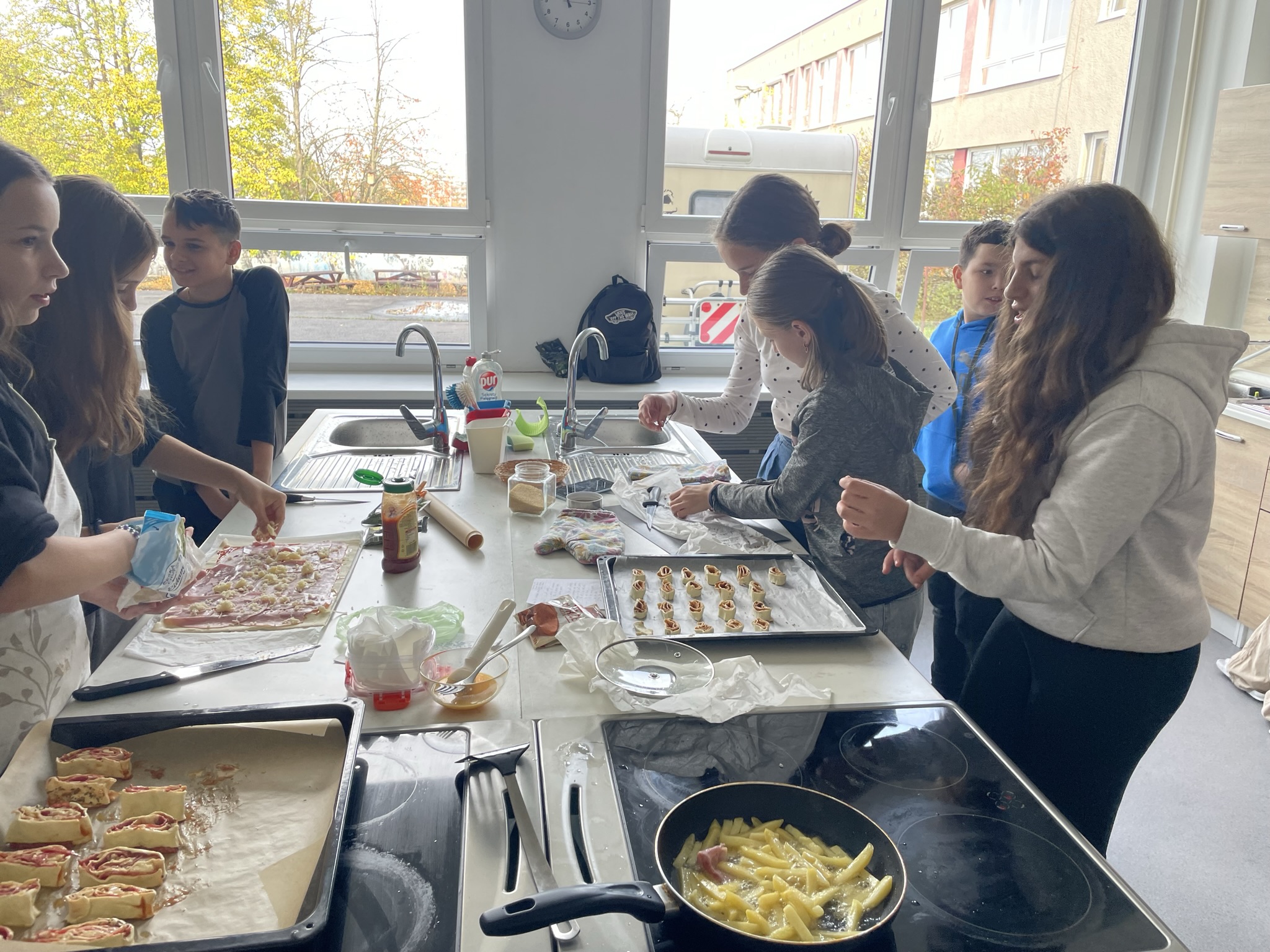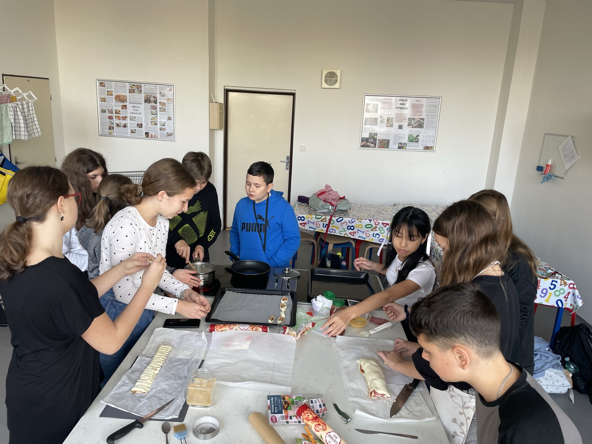 V adventním období ve středu 6. 12. 2023 jsme se rozhodli zpestřit hodiny FJ vařením jednoduchých francouzských pokrmů v naší školní kuchyňce. Na vaření se podílely všechny třídy, které se učí francouzský jazyk. Na přípravu i konzumaci jsme neměli mnoho času, proto zvítězila příprava palačinek – les crêpes a slaných i sladkých dobrot z listového těsta. I když jsme museli vše zvládnout za tak krátkou dobu, kdy se vystřídaly v 1 dni všechny skupiny FJ, výsledek se dostavil – pokrmy krásně voněly po celé škole a také všem chutnaly. Mnoho žáků... Celý článek >>