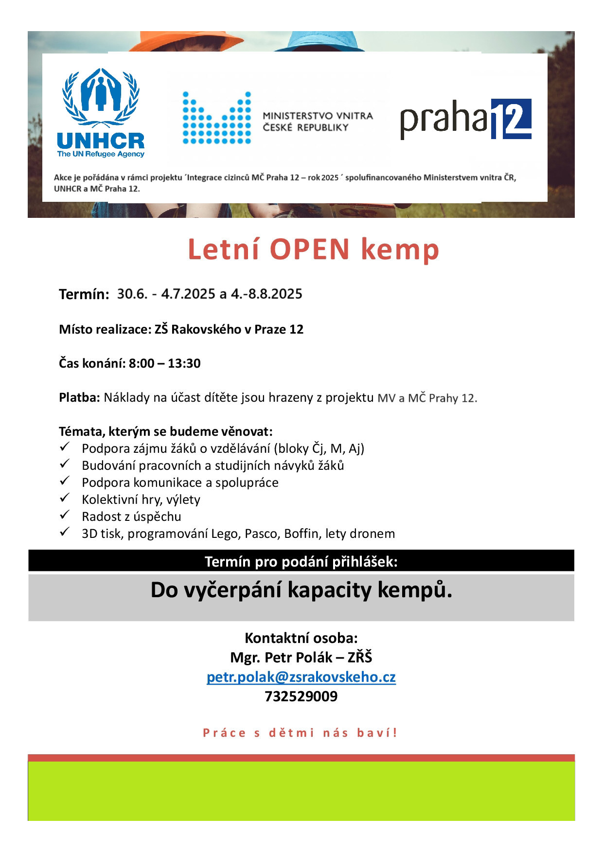 dne 18. 6. 2025 v 17:00 proběhne schůzka s rodiči i dětmi (budoucími prvňáčky a žáky přípravné třídy) v objektu Krhanická - hlavní vchod (Krhanická 759/15).