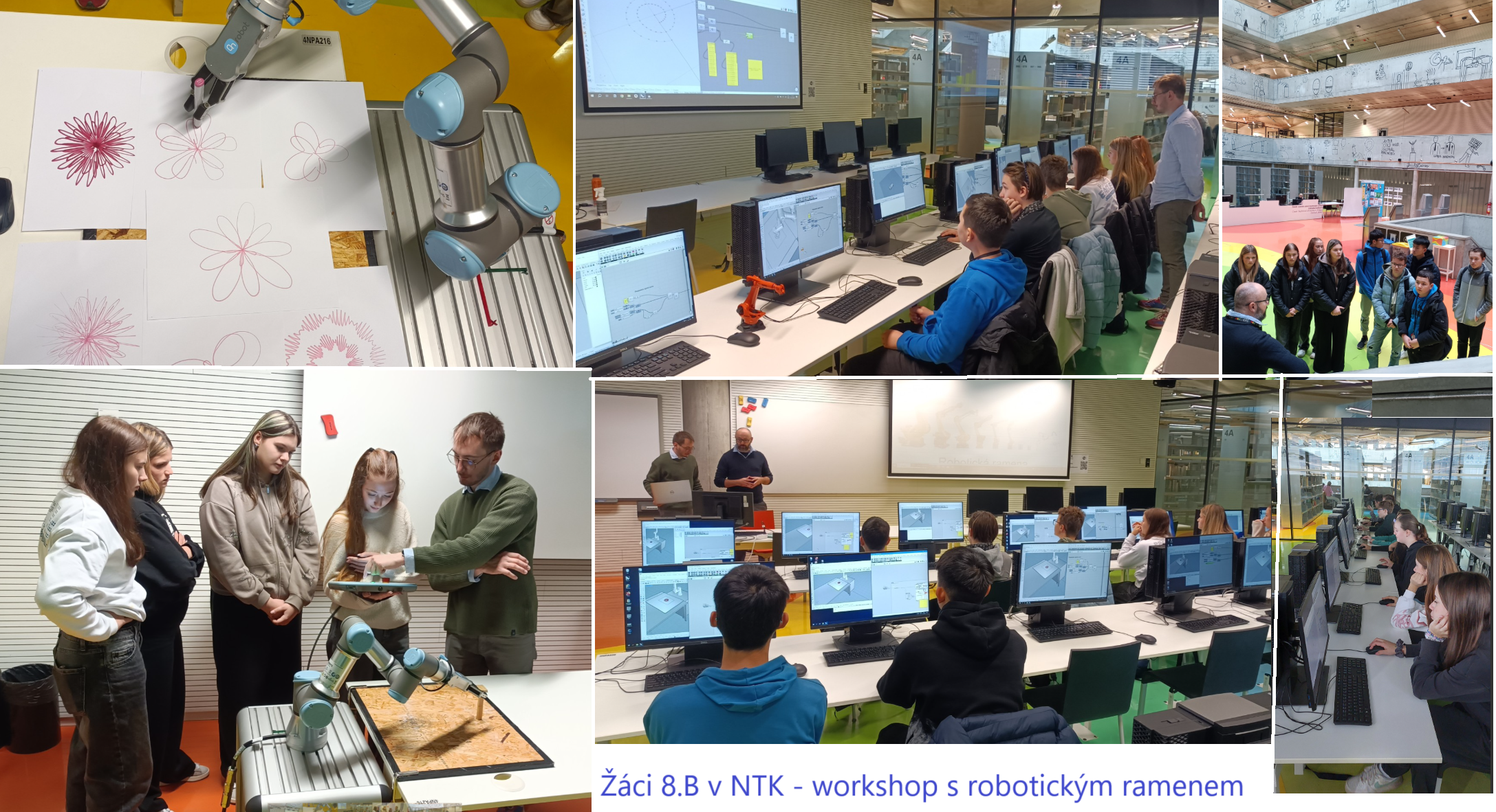 Ve středu 15.11.2024 navštívila 1/2 třídy 8.B, 2. polovina pak stejný program absolvovala 18.12.2024, celá třída 8.A pak v únoru 2025. Národní technickou knihovnu, kde se zúčastnila workshopu robotického ramene. Program byl velmi dobře připravený, žáky zaujalo i samotné prostředí.