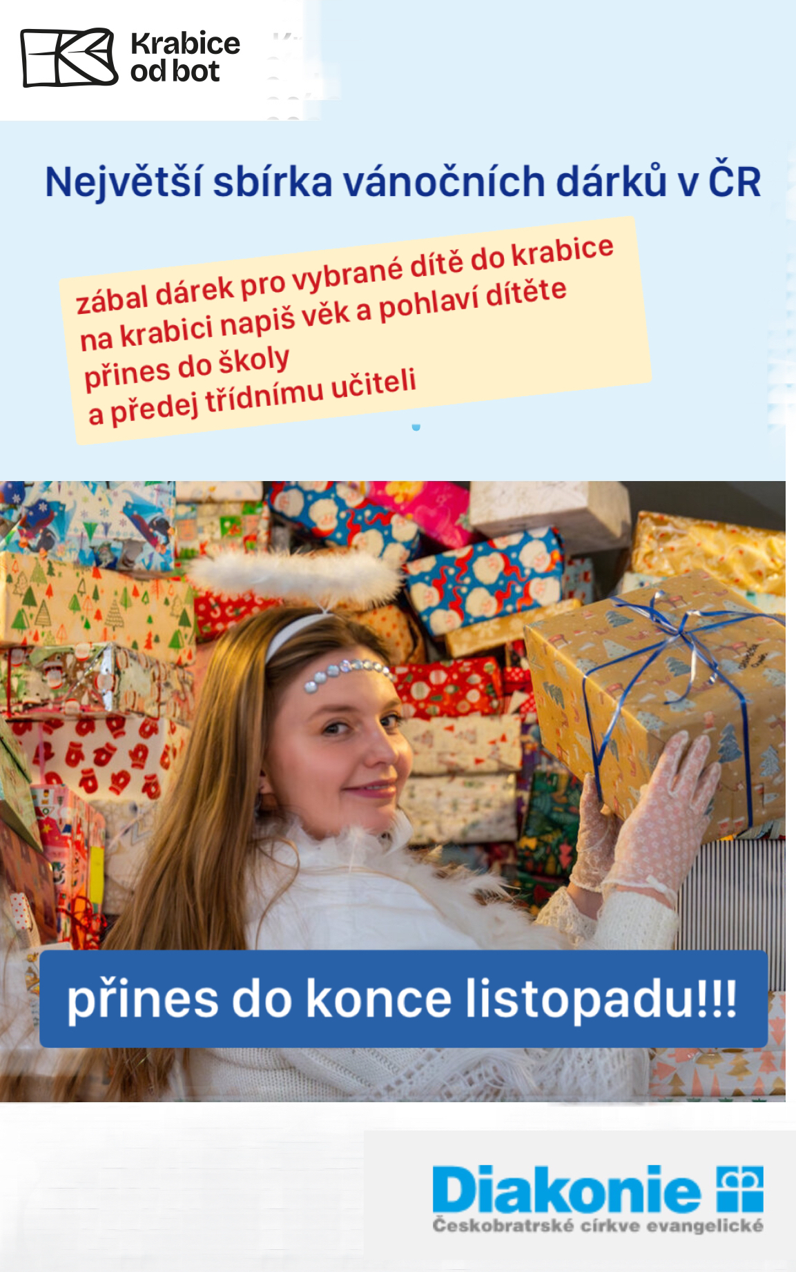 I letos se naše škola zapojila do projektu Krabice od bot, který pořádá Diakonie ČCE (https://www.krabiceodbot.cz).