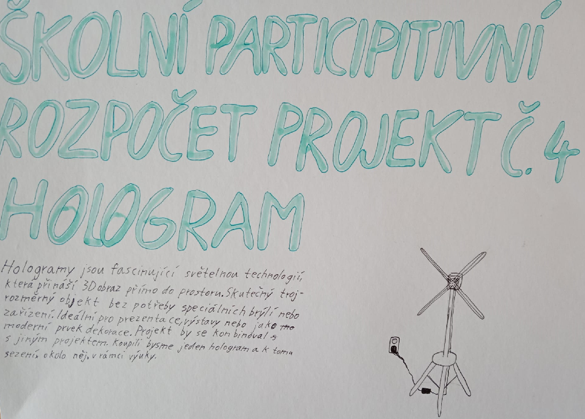 - diskutoval o možnostech informování ostatních žáků o projektech k hlasování – bude provedenou formou prezentace na webových stránkách i v papírové podobě v přízemí školy. Přihlásili se žáci, kteří za pomoci koordinátorů zrealizují zpracování projektů ke zveřejnění jak ve formě na webu tak na chodbě v přízemí. Nakonec z časových důvodů byli o pomoc požádání žáci 8.A a 8.B, přihlášení žáci budou v projektu využiti ke zveřejnění výsledků.