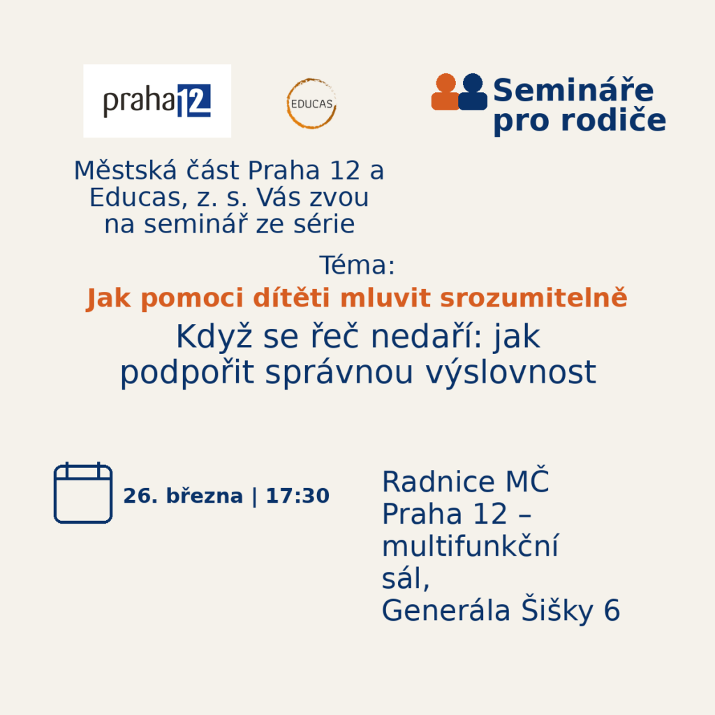Městská část Praha 12 ve spolupráci s organizací Educas, z. s., vás srdečně zve na další zajímavou přednášku, tentokrát na téma: „Online/Offline zdravé návyky pro celou rodinu, aneb Digi svět v rodině – hranice, které fungují“. Přijďte si poslechnout praktické tipy a doporučení, jak zvládnout digitální svět v rodině s větší jistotou a klidem.