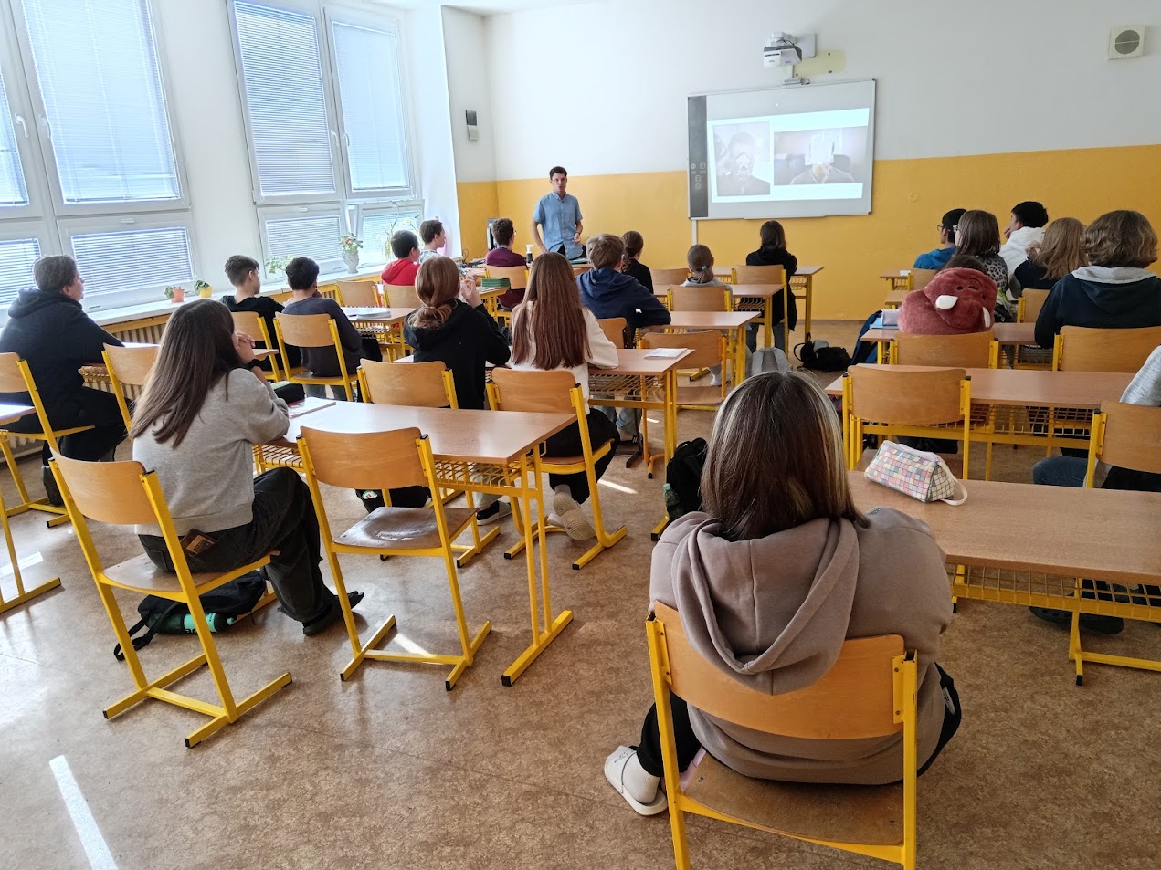 Další zajímavou přednáškou byla přednáška pro 8. ročníky M.Fejfara ze Školy projektování, firmy Loxia s téměř 30 lety praxe. Jde o poutavou interaktivní přednášku, která představuje a přibližuje žákům obor architektury a stavebnictví. Žáci získají skutečný vhled do praxe na reálných projektech a propojí si ji s teorií, mají tak snažší rozhodování při volbě případného oboru.