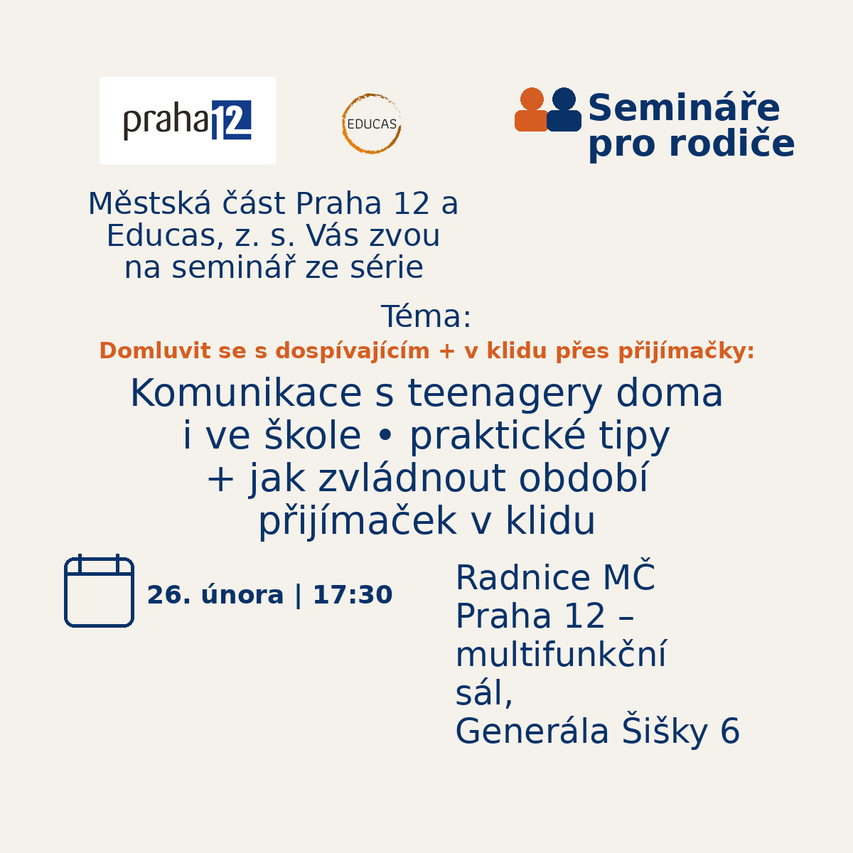 Seminář pro rodiče organizovaný MČP12